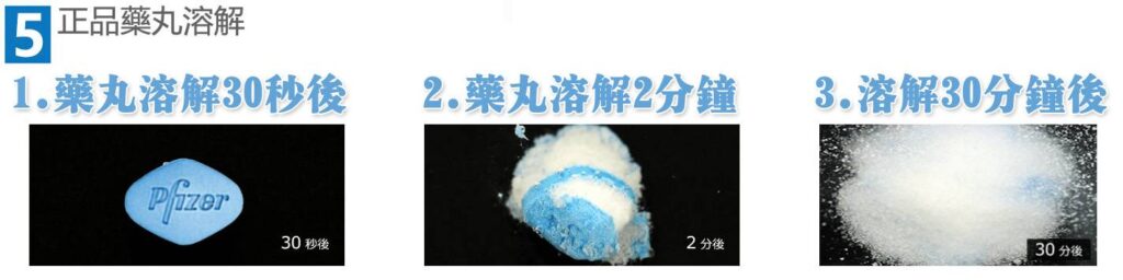 一般情況下,分辨偽藥根本無需到這個步驟,因為大部分偽藥因為需要控制成本的緣故,根本不會將其模仿跟正品威而鋼一模一樣。但為了讓民眾可以更清楚直觀的分辨真假,以及正品威而鋼需要多久才能給人體吸收,我們還是講一下。