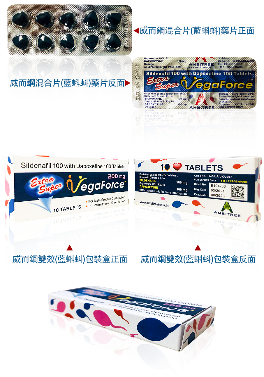 【有效成分】西地那非100mg(威而鋼)+達泊西汀100mg(必利勁)